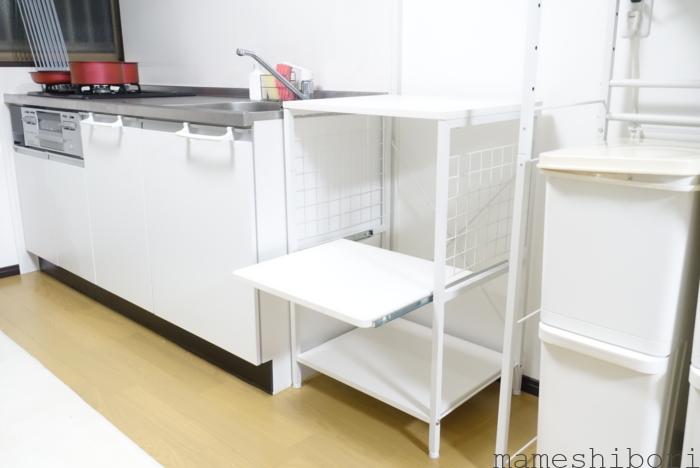 そのため、キッチン横にラックを置く事にしました。