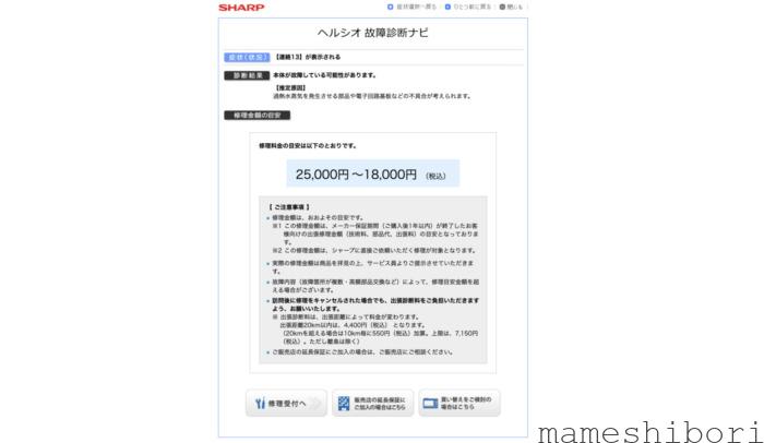 シャープではエラーコードの番号によって、修理の値段やどんな修理内容かがわかるようになっています。