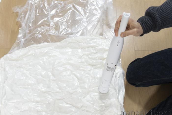 そのため我が家は、布団圧縮をする機械を3,000円位で購入しました。